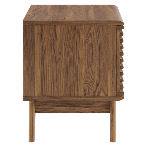 Tap into mid-century aesthetics with the Render Vinyl Record Display Stand. Render features a durable particleboard frame with walnut grain laminate, four tapered wood legs, non-marking foam foot pads, and a hinged slatted door with ample storage space for your vinyl record collection. Complete with metal dividers to keep records standing upright, Render’s contemporary linear style is the perfect addition to the modern living room, lounge space, bedroom, or recreation area.