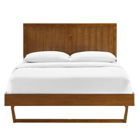 Bring modern style to the master bedroom or guest room with the retro detail and organic aesthetics of the Alana Wood Queen Platform Bed. Inspired by mid-century design, the queen headboard of this wood bed features beautiful wood paneling and contemporary accents. This platform bed frame is a sturdy addition to the bedroom with a durable wood, MDF, and veneer construction and angular rubberwood legs. Eliminating the need for a box spring, this queen bed is complete with a wood slat support system, reinforced center beam, and supporting legs that make it a lasting mattress foundation for memory foam, latex, innerspring, and hybrid mattresses. Assembly required. Queen Bed Frame Weight Capacity: 601 lbs.