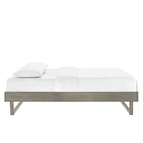Set the stage for modern style and comfortable sleep with the Billie Queen Platform Bed. Inspired by mid-century design, this queen size bed frame boasts retro detail with contemporary accents and organic aesthetics to bring trending modernity to your master bedroom or guest room. Adapting to any decor theme with the option of interchangeable headboards, this bed frame is compatible with the Robbie, Draper, Archie, and Collins headboard collections. This platform bed frame is a sturdy addition to the bedroom with a durable wood, MDF, and veneer construction and angular rubberwood legs. Eliminating the need for a box spring, this queen bed is complete with a wood slat support system, reinforced center beam, and supporting legs that make it a lasting mattress foundation for memory foam, latex, innerspring, and hybrid mattresses. Assembly required. Queen Bed Frame Weight Capacity: 601 lbs.