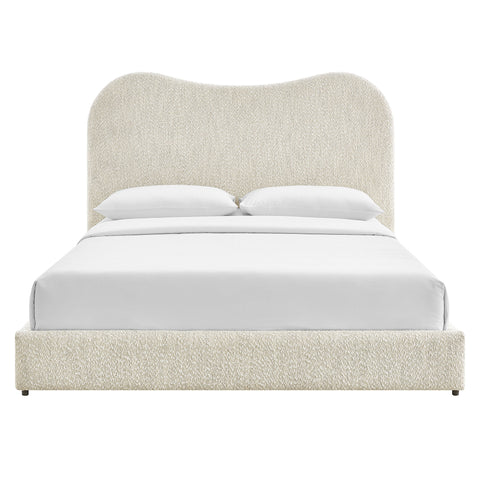 Soft curves meet clean lines in the Seluna Queen Platform Bed, a modern silhouette grounded in plush comfort. Fully upholstered in cozy boucle fabric, this queen size bed features a sculptural, cloud-like headboard that rises in gentle arches. The padded frame rests low to the ground with softly rounded corners and a wood slat support system that eliminates the need for a box spring. Seluna’s minimal profile and tactile fabric bring a sense of warmth to modern bedrooms, guest rooms, or apartments. Low profile black legs and a sturdy frame ensure long-lasting support beneath a queen size mattress. Mattress not included. Assembly required. Weight Capacity: 800 lbs.