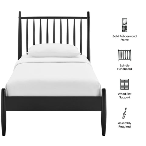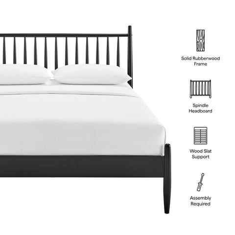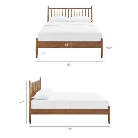 With classic lines and a modern, easygoing feel, the Zane Queen Size Spindle Bed brings a calm, tailored look to any bedroom. Crafted from durable rubberwood, this queen bed features a tall spindle headboard supported by smooth, rounded posts that taper gracefully toward the base for a clean, sculpted profile. Vertical rods keep the silhouette light, while the queen footprint makes it a comfortable fit for primary or guest rooms. Thoughtfully built for everyday living, the Zane queen platform bed frame includes sturdy wood slats that provide reliable mattress support—no box spring needed—bringing the timeless appeal of a midcentury modern platform bed to modern interiors. Weight Capacity: 800lbs.