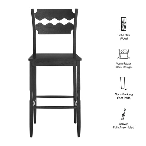 Jax Oak Wood Bar Stool With Wavy Razor Back in Weathered Oak by Modway