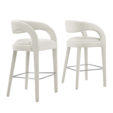 Pinnacle Boucle Upholstered Bar Stool Set of 2 in Ivory Silver by Modway