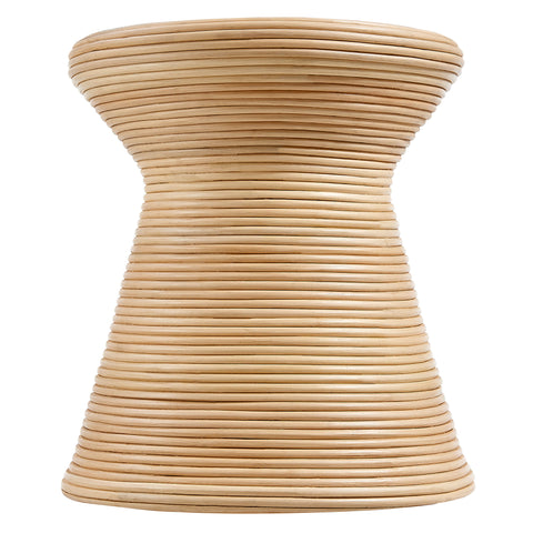 Sculptural yet grounded, the Tavi Round Side Table brings natural charm to living rooms, bedrooms, and sun-drenched nooks. Featuring an airy hourglass shape made of natural rattan, this round accent table adds texture and visual interest to any space. Use it as a perch for books, plants, or a morning coffee beside your favorite lounge chair. Designed for everyday ease, Tavi arrives fully assembled and includes non-marking foot caps to help protect wood or tile floors. While intended for indoor use, it also makes a stylish addition to covered patios or breezy garden rooms. Product Note: Due to the natural qualities of rattan, slight variations in color and pattern are to be expected, adding to each piece’s unique character.