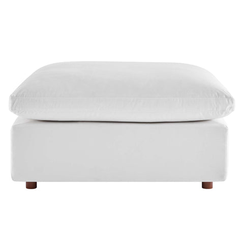 A haven for cozy relaxation, Commix features plush comfort, clean-lined design, and spacious profile, that makes an attractive statement in the modern home. Covered in stain-resistant performance velvet, this upholstered ottoman comes with a solid wood construction and foam padded and duck down cushions for a luxurious sink-in feel. Commix features overstuffed down feather cushions that offer a feeling of relaxation and calming comfort while lounging, making it the perfect addition to the living room, family room, or game room. Made for sprawling out or curling up, Commix beckons you and guests to sit and stay a while. Includes plastic foot glides. Ottoman Weight Capacity: 331 lbs.