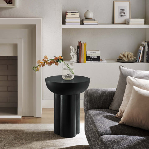 Enhance your living area with the Caspian Side Table, an ideal modern accent table for daily convenience and decorative flair. This elegant round end table, perfect for any living room, bedroom, or lounge area, features a unique trefoil-shaped pedestal base, adding a contemporary touch to your home or apartment. Crafted from MDF with a stylish concrete overlay, this piece serves well as a compact side table for small spaces or as a chic hallway table. The Caspian Living Room Side Table, balancing durability with sleek design, includes felt pads for floor protection. Weight Limit: 198 lbs.