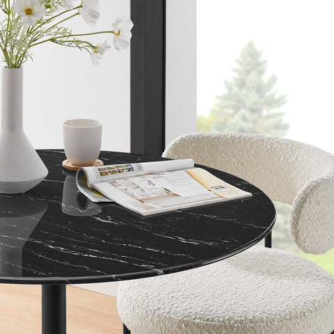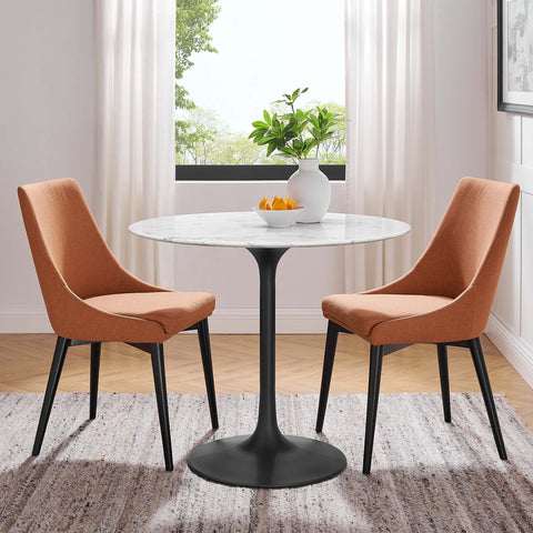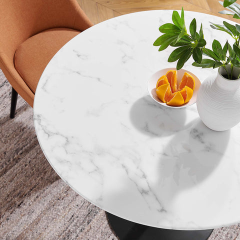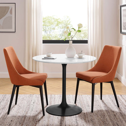 Let modern inspiration flow while gathered around the Lippa 36" Round Dining Table. Perfect for entertaining family and friends or everyday dining, this pedestal table comfortably seats two. Its round tabletop is crafted with MDF with a high gloss finish and beveled edge for a contemporary yet timeless design. Embodying an iconic mid-century silhouette, this pedestal dining table floats on a sleek tapered metal pedestal base with a chip-resistant lacquered finish. Includes non-marking felt pad to protect flooring. Assembly required.