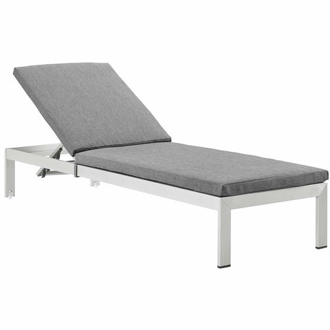 Shore Outdoor Patio Aluminum Chaise with Cushions in Silver Gray by Modway