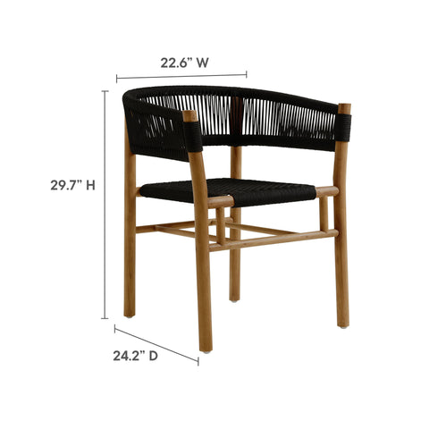 Vienna Outdoor Patio Teak and Rope Curved-Back Dining Armchairs Set of 2 in Natural Black by Modway