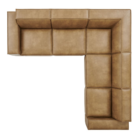 Restore 5-Piece Vegan Leather Modular L-Shaped Sofa in Toast by Modway