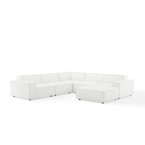 Create your custom living room and lounge area with the Restore Upholstered Fabric 6-Piece Sectional Sofa. The Restore Sectional Sofa appeals to minimalist elegance with a crisp design and broad lines accented with French piping details and polyester fabric upholstery. Dense foam padding and a pocket coil spring system in the cushions offer a luxe seating experience for your living room and lounge. The Restore Living Room Sectional Sofa is solidly constructed from plywood and wood with non-marking foot caps to protect flooring and connectors between modular pieces.
