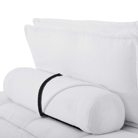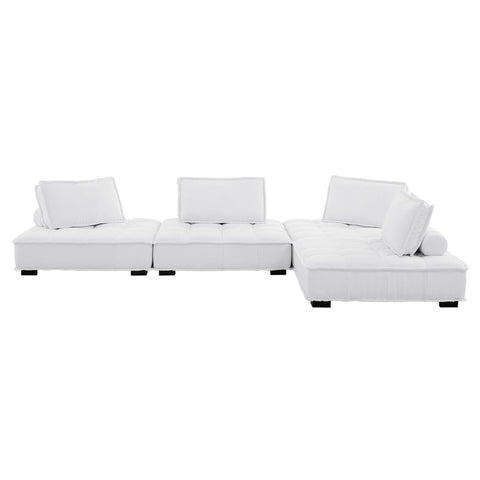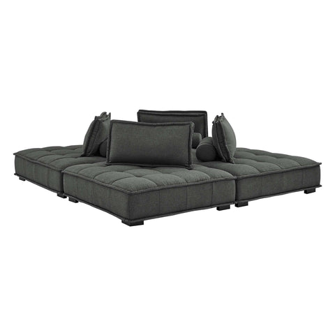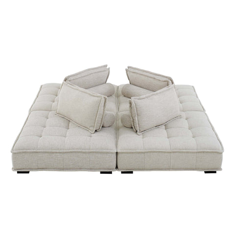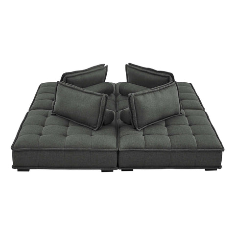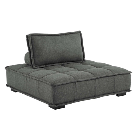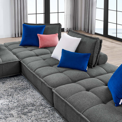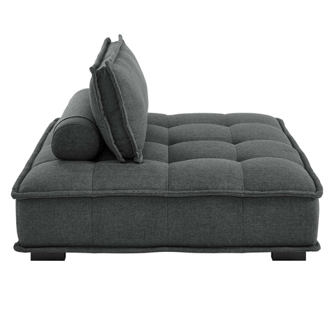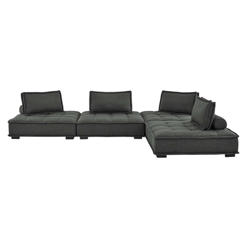 Sprawl out amidst comfort and style on the Saunter Tufted Fabric 4-Piece Sectional Sofa. With square biscuit tufting, French piping detail, and soft polyester upholstery, this sectional sofa collection brings tailored style to your living space or lounge area with its charming low profile silhouette. A removable bolster pillow supporting a seat back cushion offers a comfortable place to rest while watching TV, relaxing, or entertaining. Dense foam padding and a sinuous spring support system grant a premium seating experience for all occasions. This four-piece sectional sofa rests atop L-shaped rubberwood legs with non-marking foot caps. Set Includes: 4 Armless Chairs; Weight Capacity Each Chair: 300 lbs.