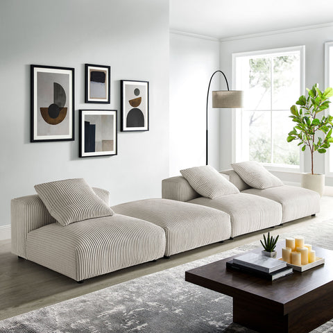 Solace 4-Piece Modular Corduroy Upholstered Sectional Sofa in Almond by Modway