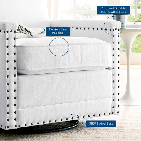 Ashton Upholstered Fabric Swivel Chair in White by Modway