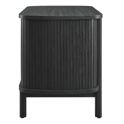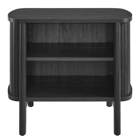 Revolutionize your bedroom or apartment decor with the Cadence Open Storage Nightstand. This modern nightstand is perfect at your bedside, offering both style and functionality. The unique design features rounded corners and fluted details, adding a stylish flair to any space. Crafted from high-quality materials such as rubberwood, particleboard, and MDF, the Cadence boho nightstand is designed for longevity and showcases a beautiful wood grain laminate, enhancing the organic aesthetics of your bedroom or living space. This open shelf nightstand has two storage compartments to comfortably support books, decorative items, or nighttime essentials. It includes non-marking foot glides for added stability. The Cadence fluted nightstand is a multi-functional piece that elegantly combines practicality with elegance and is versatile enough to serve as an open shelf side table, living room end table, or small accent table. Assembly required. Tabletop Weight Capacity: 79 lbs. Each Shelf Weight Capacity: 57 lbs.
