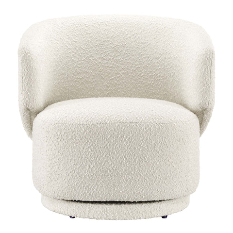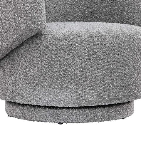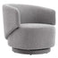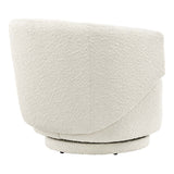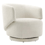 Introduce appreciated texture to a living room, entryway, bedroom, office, or other seating area with the Celestia Boucle Fabric Swivel Chair. Featuring a curved silhouette with angular details, this accent chair abounds in luxe modern style. This swivel chair is upholstered in durable boucle fabric that boasts a charming nubby texture. Dense foam padding offers a premium seating experience while the swivel base allows this upholstered chair to effortlessly rotate to suit the needs of the moment. Comes fully assembled. Weight Capacity: 330 lbs.
