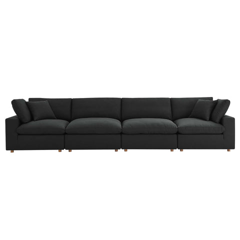 Commix 4 Piece Down Filled Overstuffed Sectional Sofa Set in Black by Modway