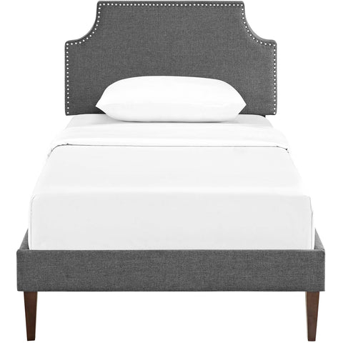 Corene Fabric Twin Platform Bed with Squared Tapered Legs in Gray by Modway