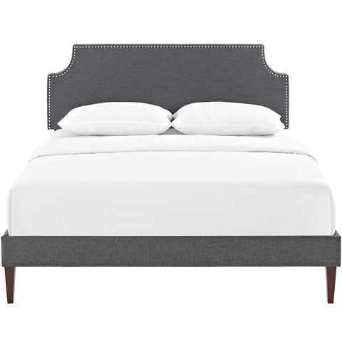 Accelerate your bedroom decor with the Corene Platform Bed. Made with a solid wood frame upholstered in polyester fabric, Corene features tapered wood legs, plastic foot glides, stylish headboard, and ten sturdy wood slats with a centered supporting bar and two support legs for enhanced stability. Due to the wooden slat support system, the use of a box spring is unnecessary. Corene supports memory foam mattresses such as our Aveline series. Perfect for mid-century modern, minimalist and contemporary bedrooms. Mattress not included. Assembly Required.