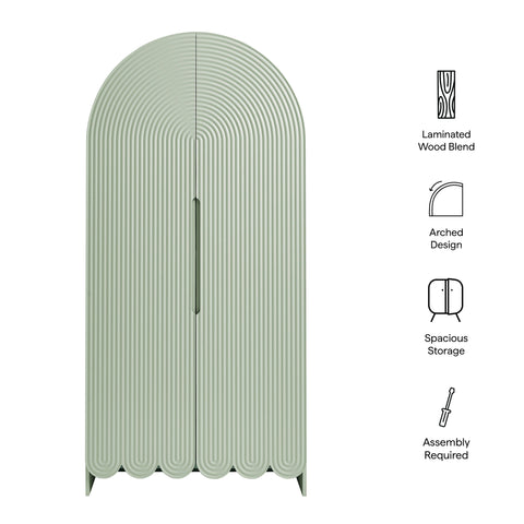 Dahlia 78 Inch Fluted and Scalloped Arched Storage Cabinet in Sage by Modway