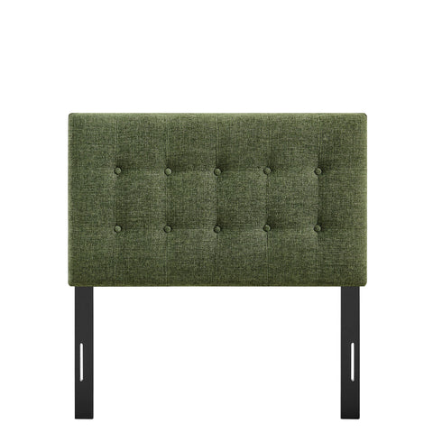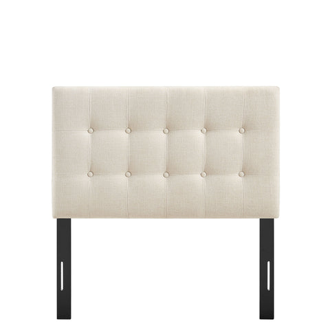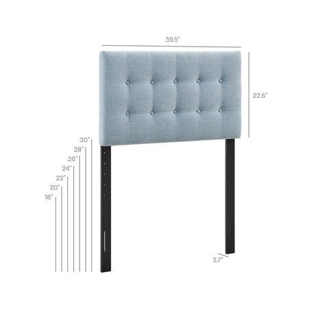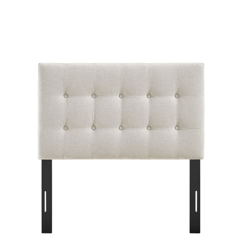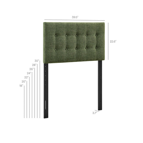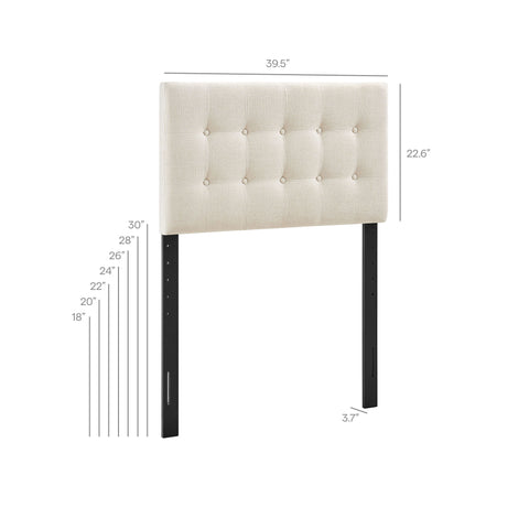 Sized for a twin bed, the Modway Emily Button Tufted Headboard gives modern beds a finished, intentional look. Upholstered in premium linen-like fabric with classic button tufting, this twin headboard adds a clean, structured backdrop to kids’ rooms or studio spaces. Made with a wood blend frame, Emily offers a supportive foundation while pairing easily with contemporary and minimalist styles. Featuring 7 mounting positions, it adjusts to the height that works best with your twin bed frame.
