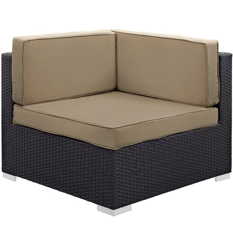 Gather Corner and Middle Outdoor Patio Sectional Set in Espresso Mocha by Modway