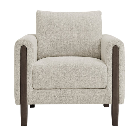 Settle into sculptural comfort with the Hawken Accent Armchair. Designed with bold curves and oversized proportions, this lounge chair offers a wide, inviting seat and rounded armrests for a cozy reading or relaxation experience. Upholstered in soft brushed boucle fabric, Hawken adds depth and visual warmth to any space—from living room to bedroom to lounge area. The sturdy solid wood legs complement the textured boucle upholstery with natural warmth and mid-century charm. With a supportive foam-padded seat, plush back cushion, and zigzag spring suspension, this upholstered accent chair delivers everyday comfort with timeless modern style. Assembly required. Weight Capacity: 500 lbs.
