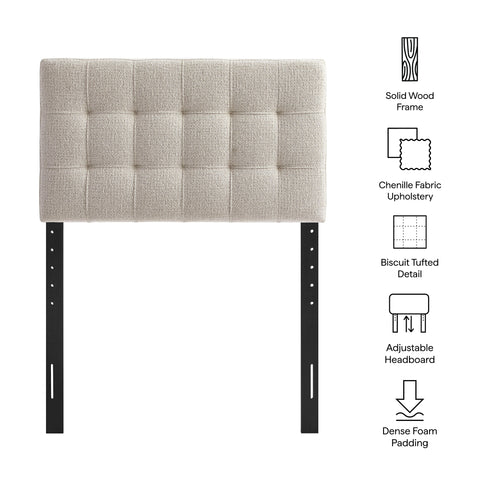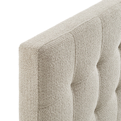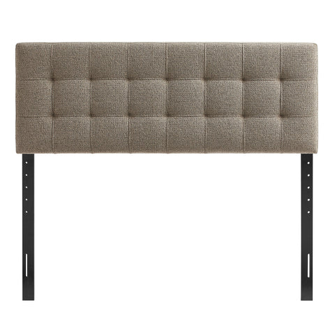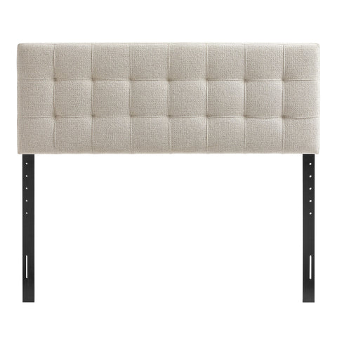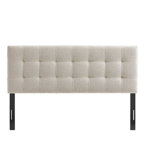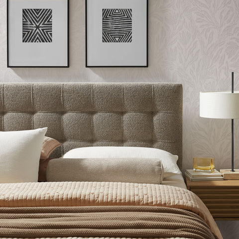 Update the bedroom with the Lily Queen Size Fabric Headboard, designed to feel soft, tailored, and easy to style. Padded with dense foam and wrapped in textured chenille fabric upholstery, this queen headboard features biscuit tufting for a crisp, paneled look that works well in primary bedrooms or guest rooms. Built on a sturdy wood-blend frame, Lily provides comfortable support when lounging in bed while adding a clean, modern accent that pairs well with both minimal and classic décor. Finished with five mounting positions, the height can be adjusted to suit different setups. Assembly required.