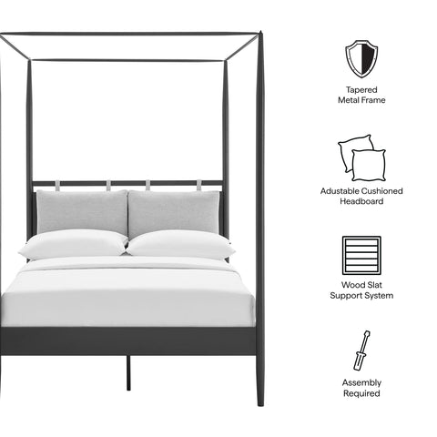 Marlowe 4-Poster Canopy Metal Queen Platform Bed in Charcoal by Modway