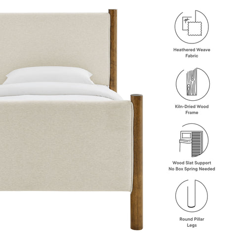 Maven Queen Size Fabric Upholstered Platform Bed in Ivory Oak by Modway
