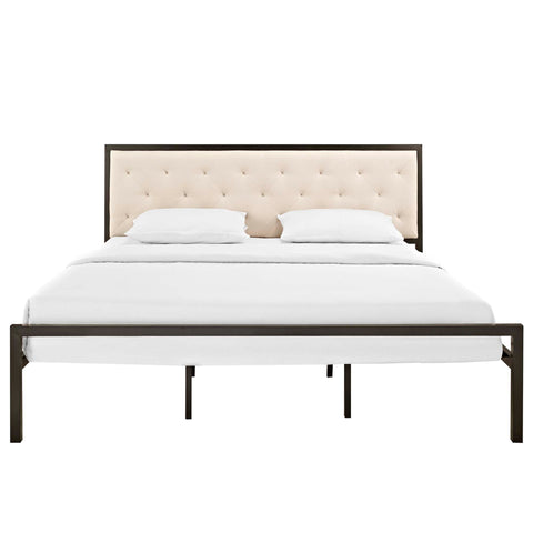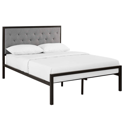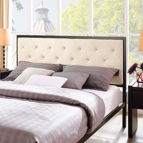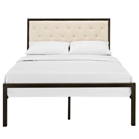 Sleep peacefully with a platform bed solid in both style and construction. Mia comes with a powder-coated steel frame that offers sturdy and long-lasting support, while the vinyl headboard with deep tufted buttons adds a touch of magnificence to an otherwise minimalist design. The Mia Platform Twin Bed does not require a box spring. Twin mattress not included.