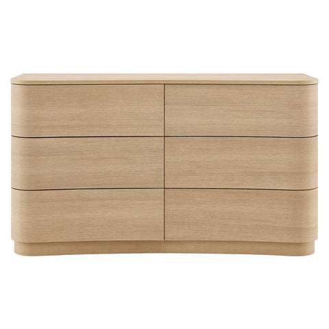 Mirae 6-Drawer Curved Dresser in Brushed Light Oak by Modway