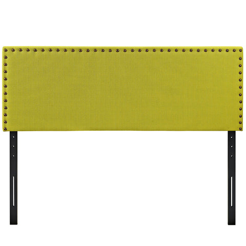 Enhance your bedroom with the elegantly designed Modway Phoebe Fabric Upholstered Queen Headboard. Minimalist and chic, Phoebe Queen Headboard transforms with sleek lines and a stunning nail button trim accented in silver. Phoebe is a headboard for queen beds that features a solid wood frame, adjustable wood legs, soft linen fabric upholstery, and dense foam padding for ultimate support.