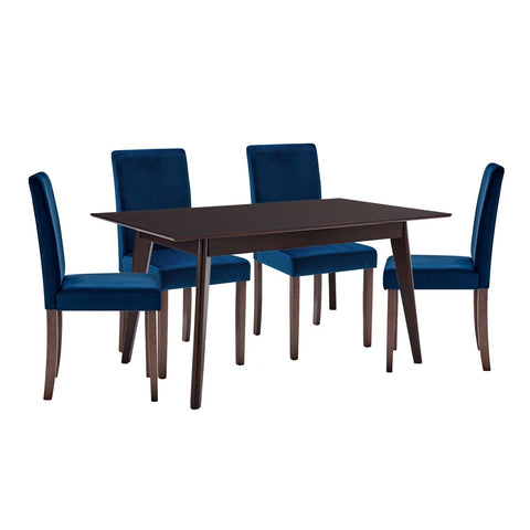 Prosper 5 Piece Upholstered Velvet Dining Set in Cappuccino Navy by Modway