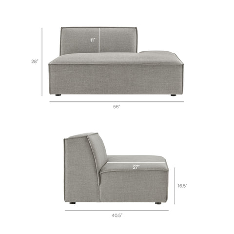 - Right Arm Chaise Lounge Dimensions: 40.5"L x 56"W x 28"H