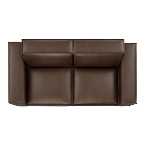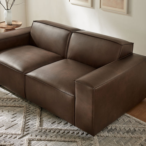 Create your custom living room and lounge area with the Restore Vegan Leather 2-Piece Sectional Sofa. The Restore Sectional Sofa appeals to minimalist elegance with a crisp design and broad lines accented with French piping details and soft faux leather upholstery. Dense foam padding and a pocket coil spring system in the cushions offer a luxe seating experience for your living room and lounge. Built on a sturdy wood-blend frame with non-marking foot caps to help protect floors, this modular loveseat can stand on its own or connect easily to other Restore pieces using the built-in connectors.