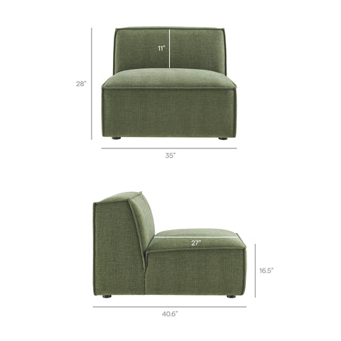- Armless Chair Dimensions: 40.6"L x 35"W x 28"H