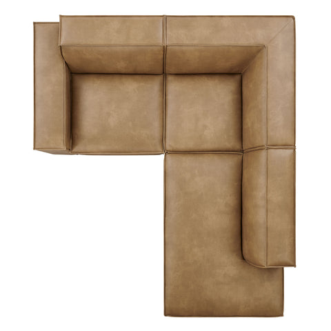 Restore 3-Piece Vegan Leather Modular L-Shaped Sectional Sofa in Toast by Modway