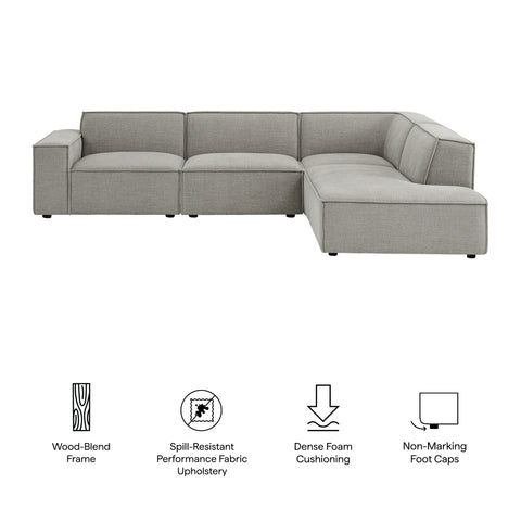 Restore 4-Piece Performance Fabric Upholstered Modular L-Shaped Sofa in Ecru by Modway