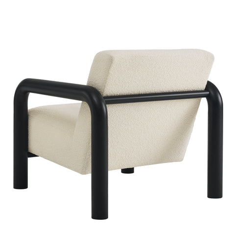 The Sereno Accent Chair brings sculptural elegance and elevated texture to any modern space. Wrapped in a soft lattice-style bouclé fabric, this lounge chair features a refined grid weave that updates the classic boucle with a sophisticated twist. Its standout feature is the pair of oversized, rounded armrests crafted from solid rubberwood—bold in silhouette, smooth to the touch, and rich in natural character. With a generously padded seat and supportive backrest filled with dense foam, Sereno offers plush comfort in a compact footprint. Perfect for reading corners, bedroom nooks, or cozy lounge setups, this upholstered armchair combines modern style with everyday comfort. Non-marking foot glides protect floors, and this fabric accent chair arrives fully assembled. Weight Capacity: 300 lbs.