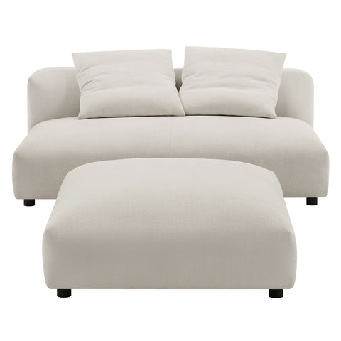 Revel in ultimate comfort and modern style with the Solace Modular Armless Loveseat and Ottoman Set. This oversized fabric armless loveseat with a matching ottoman is perfect for any living room, offering endless flexibility. Its modular furniture design allows you to change the arrangement to suit the needs of the moment or expand your seating by adding more pieces in the future. Featuring a sturdy frame, dense foam padding, and a sinuous spring support system, the Solace Small Sofa Couch grants a premium seating experience with it's soft textured woven fabric upholstery. The comfy upholstery adds a cozy, casual vibe, making this armless two-seater sofa a perfect addition to any living space or lounge area. Equipped with non-marking plastic glides and complementing accent pillows, this loveseat sectional is both stylish and practical. With no assembly required, you can enjoy immediate relaxation with this loveseat sofa with ottoman set. Loveseat Weight Capacity: 800 lbs., Ottoman Weight Capacity: 500 lbs.