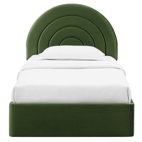 Solana Arched Performance Velvet Twin Platform Bed in Moss Green by Modway
