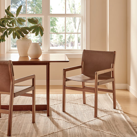 Bring timeless ease to your interior with the Sonora Teak Wood Leather Dining Chair. Designed with a refined silhouette and classic profile, this leather dining chair features a solid teak frame that highlights the wood’s natural grain while offering long-lasting support. The smooth leather seat and backrest provide structured comfort, making it a smart choice for meals, meetings, or casual seating throughout the home. Whether placed in a dining space, study, or hallway, this modern leather chair delivers a sculptural presence with warm materials and clean lines. Arrives Fully Assembled.