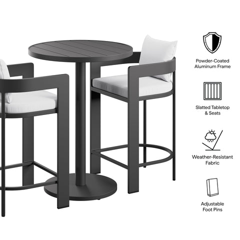 Tahoe 3-Piece Outdoor Aluminum Bar Set in Gray by Modway