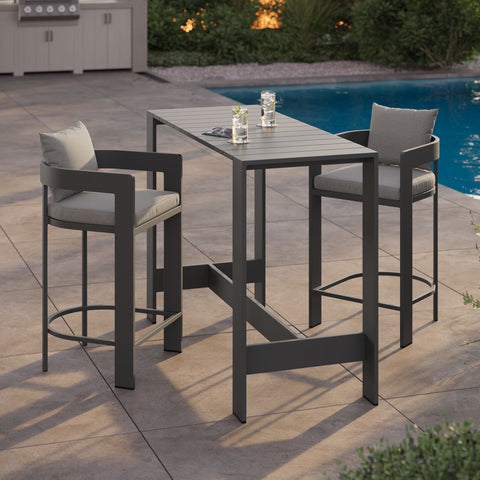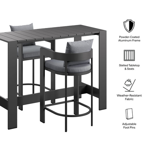 Tahoe 3-Piece Outdoor Aluminum Bar Table Set in Gray by Modway
