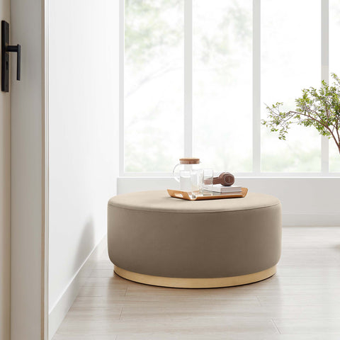 Tilden Large 38" Round Performance Velvet Upholstered Ottoman in Taupe Natural by Modway