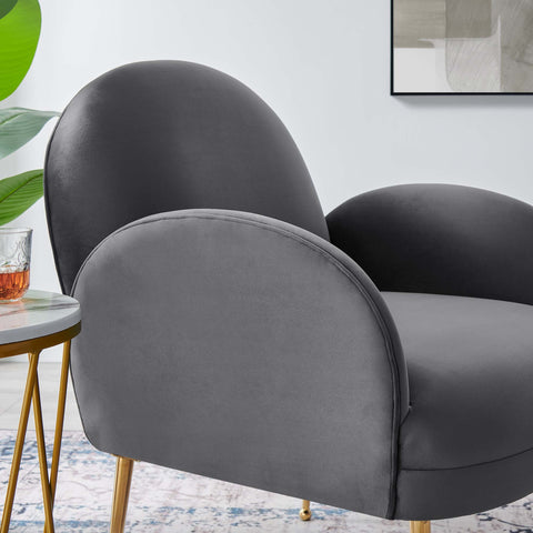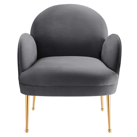 Enrich your living room or lounge space with the high caliber style and comfort of the Transcend Performance Velvet Armchair. This retro-modern armchair is a mesmerizing entryway accent chair, featuring a classic silhouette extending from gold stainless steel legs. Rich with sophistication, this velvet armchair harmonizes in mid-century modern, eclectic, or bohemian decors. Transcend is a tasteful reading chair in your home office, library, or bedroom with dense foam padding and a webbed support system for durability and comfort. This mid-century armchair is outfitted with stain-resistant performance velvet and non-marking foot glides to protect your floors. Weight Capacity: 331 lbs.
