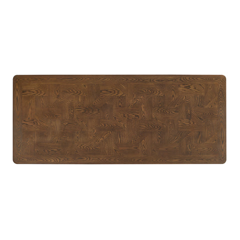 Designed to stand out, the Wrenly 94” rectangle dining table combines vintage-inspired detail with a modern silhouette. With a veneered tabletop that features a striking mix of angled wood grain patterns that adds visual interest without overwhelming the space, this large table makes a stunning focal point in any room. Perfect for 8–10 people, Wrenly works as a large kitchen dining room table, home office table, or work conference table. The base is designed with three wide curved rubberwood legs that connect at the center with horizontal supports, offering a sturdy and balanced foundation with a distinctive U shape design. Adjustable levelers and non-marking feet help keep the table stable on any surface. Assembly required. Weight Capacity: 400 lbs.