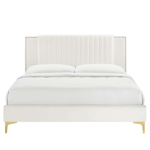 Zahra Channel Tufted Performance Velvet Queen Platform Bed in White by Modway